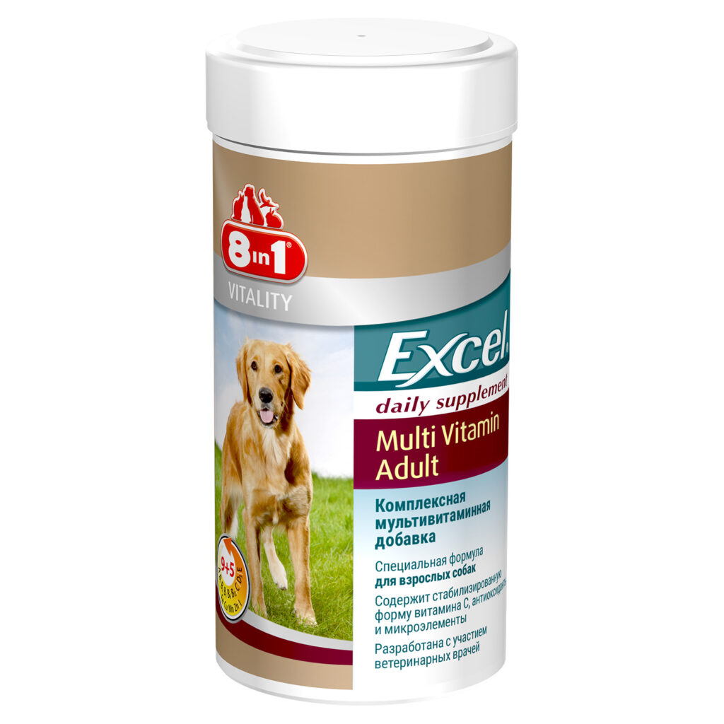 8in1 Excel multivitamin for adult dogs 70 tab. is a comprehensive vitamin and mineral supplement specifically designed to meet the needs of adult dogs. Balanced