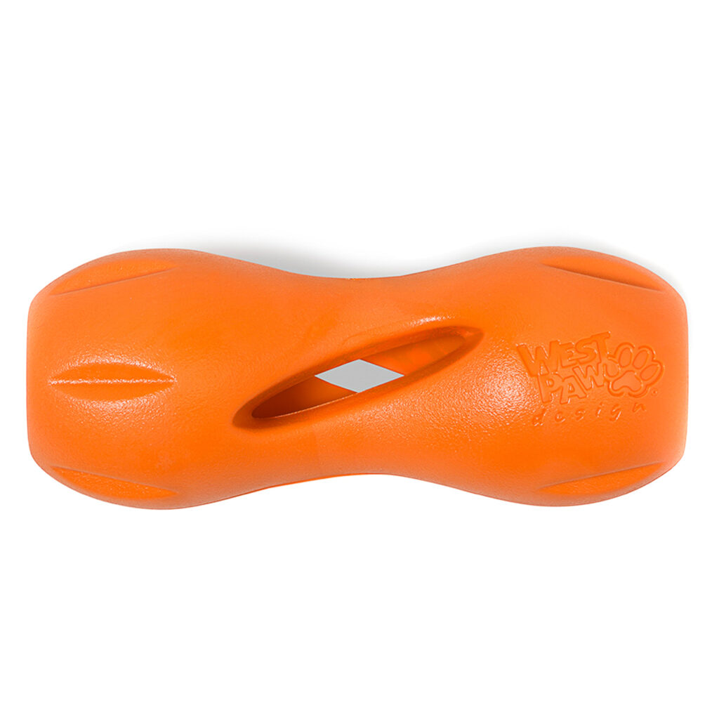 West Paw Zogoflex игрушка для собак гантеля под лакомства Qwizl S 14×6 см оранжевая